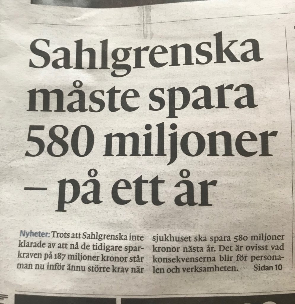 Vad blir konsekvenserna för patienterna? I Göteborgs Posten fredag 25 oktober informeras läsarna om ytterligare besparingar på Sahlgrenska/SU som aviseras. Trots att Sahlgrenska inte klarade av att nå tidigare besparingskrav […]