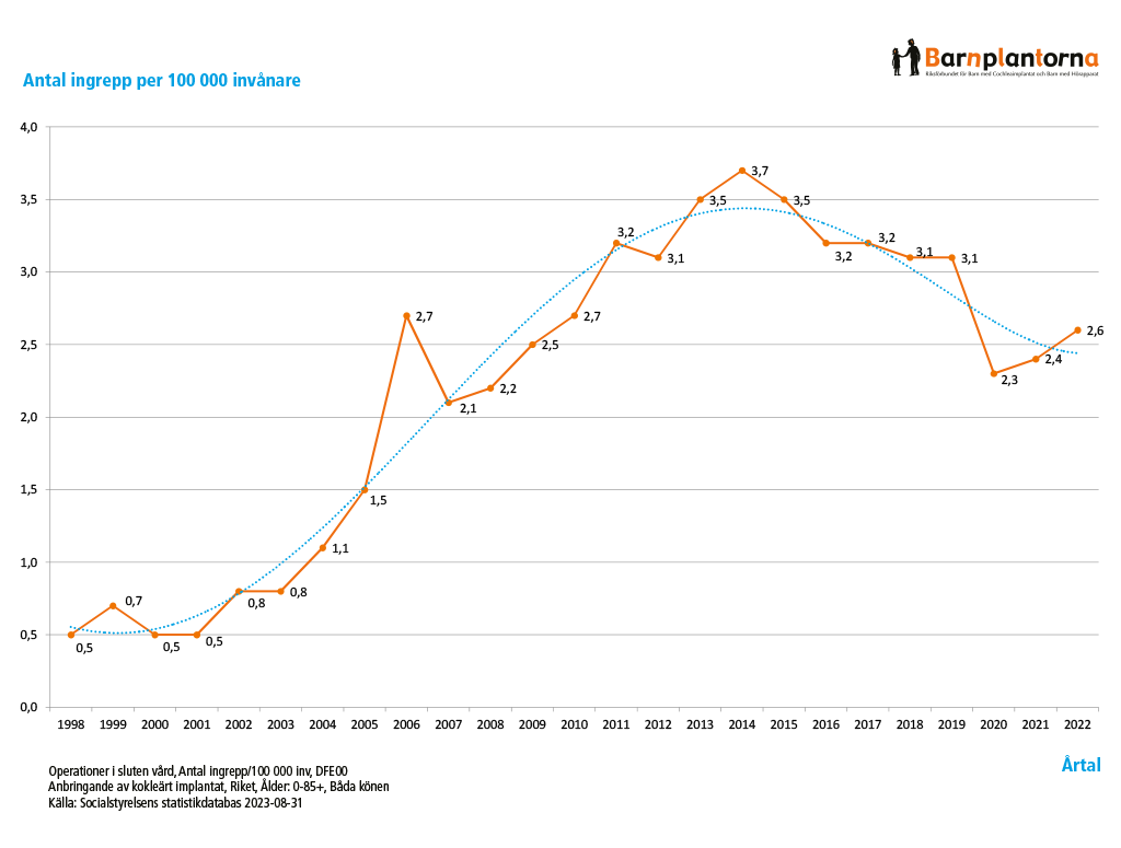 I Socialstyrelsens operationsdatabas för slutenvård kan vem som helst inhämta uppgifter om t.ex. antal utförda CI-operationer i olika åldersgrupper samt per 100 000 invånare i de olika landstingen.